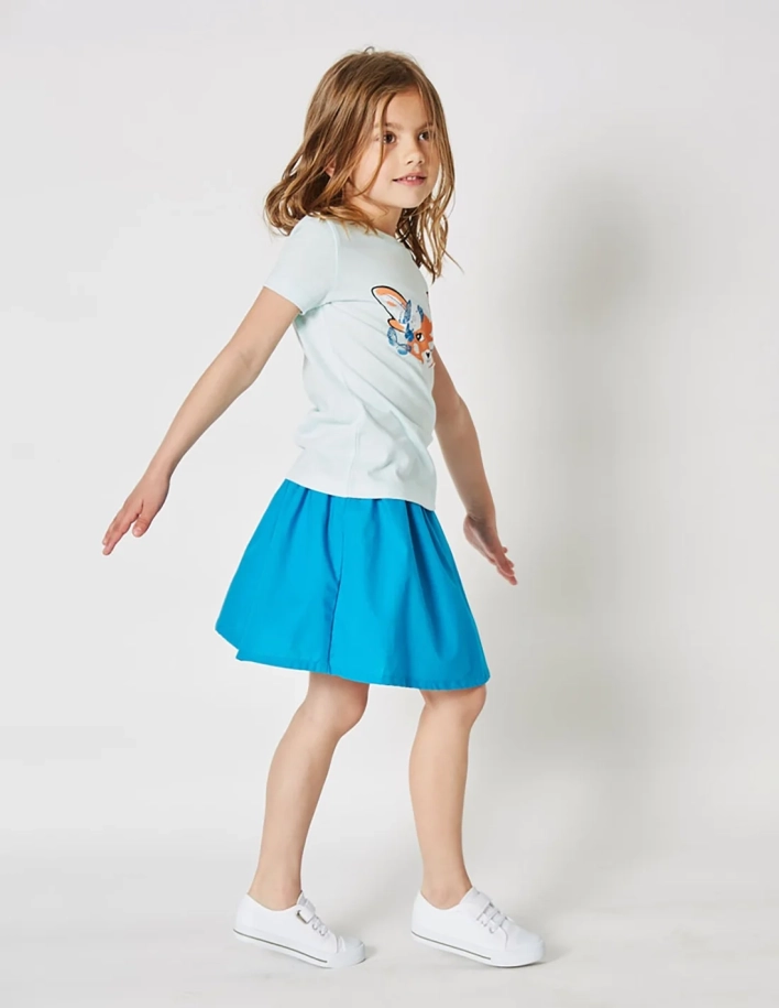 Jupe Evasée "Petit Fennec Douceur" Bleu Océan